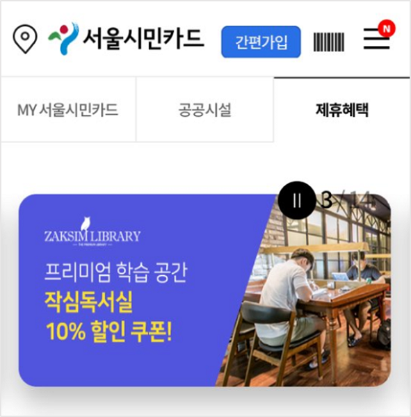 프리미엄 독서실·스터디카페 작심(ZAKSIM), ‘서울시민카드’ 앱과 제휴