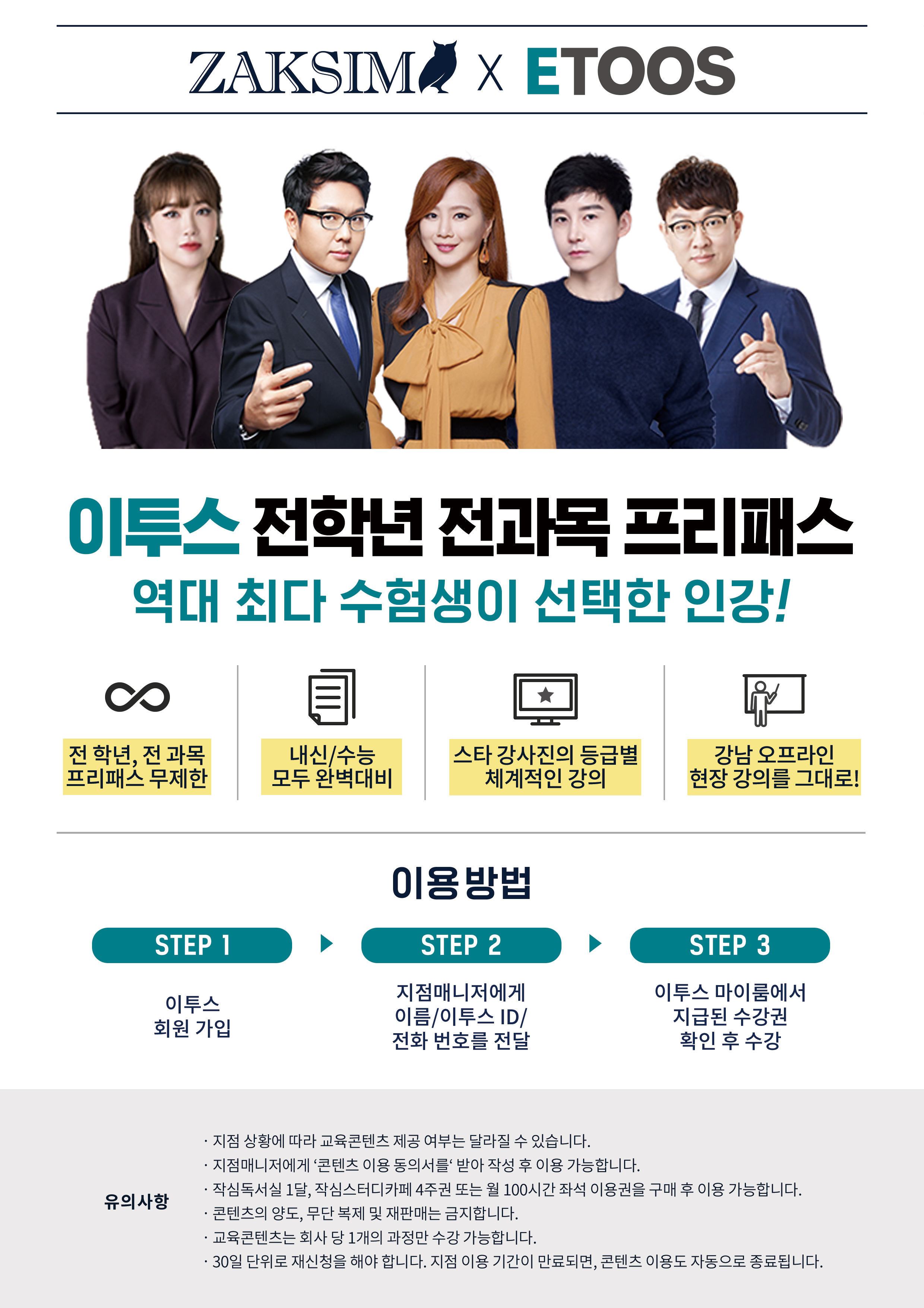 [교육콘텐츠] 작심 제공 이투스 강좌 목록 (2021년 01월 기준)
