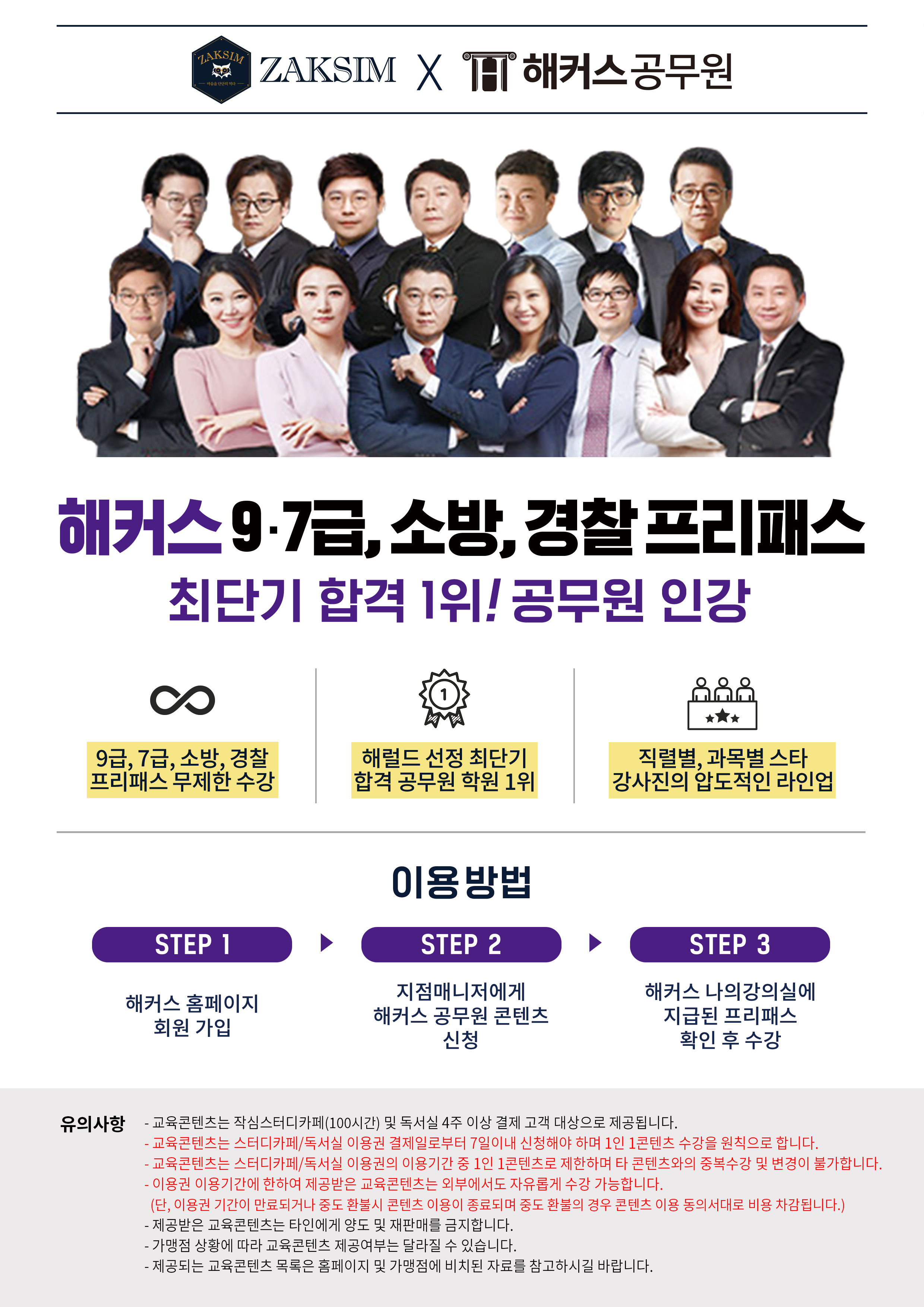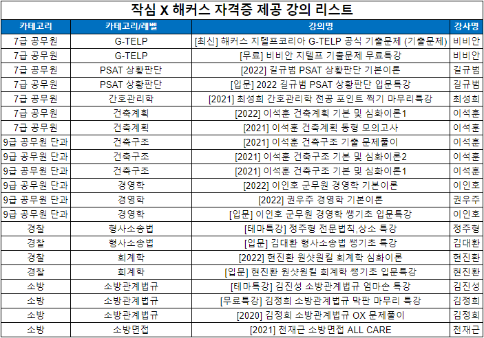 2021년 작심 X 해커스 공무원 제공 강의목록 입니다.