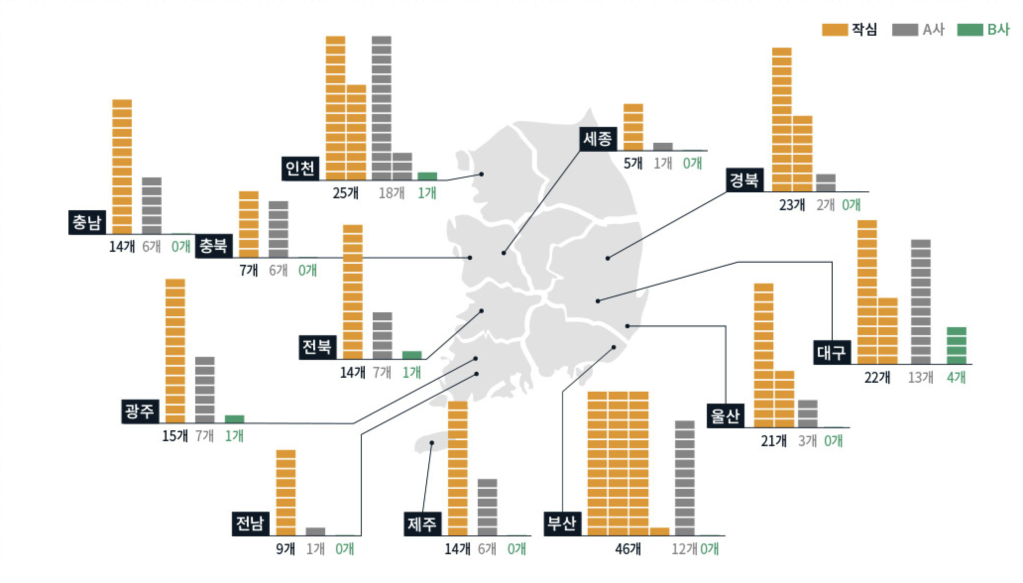 전국 7대 광역 특별시, 전국 12개 지역 시장점유율 1위 업계 최다 브랜드 등극!